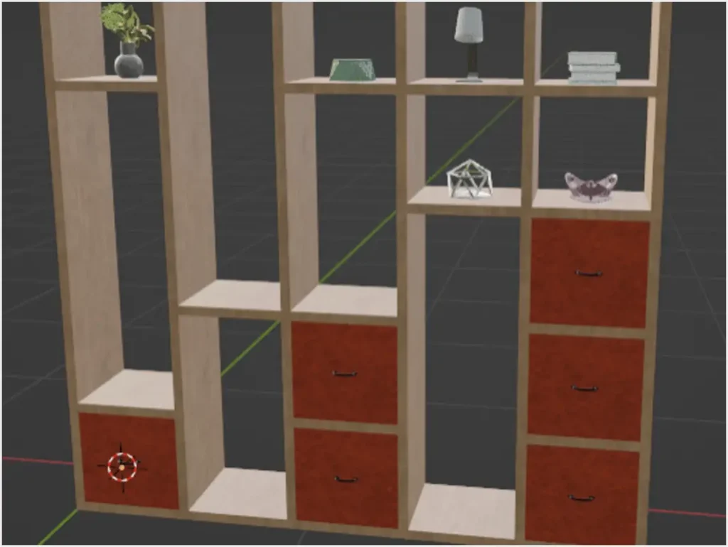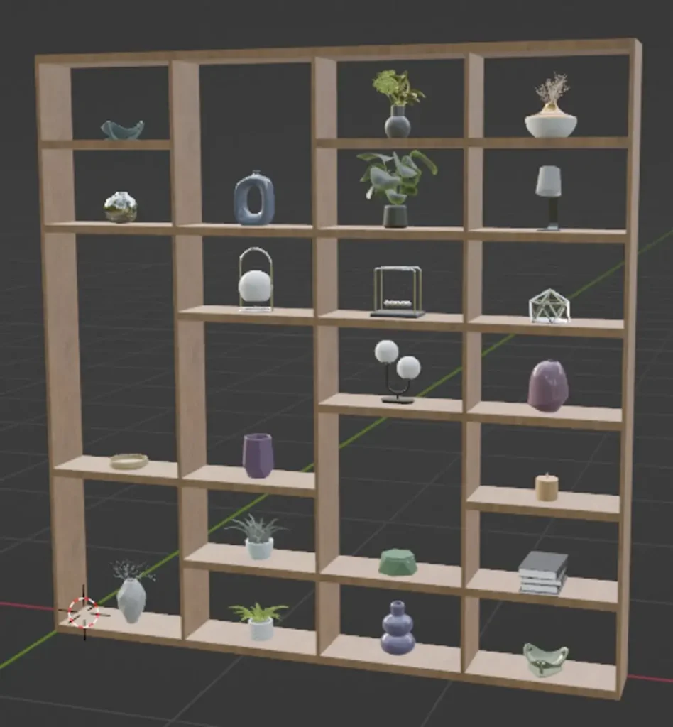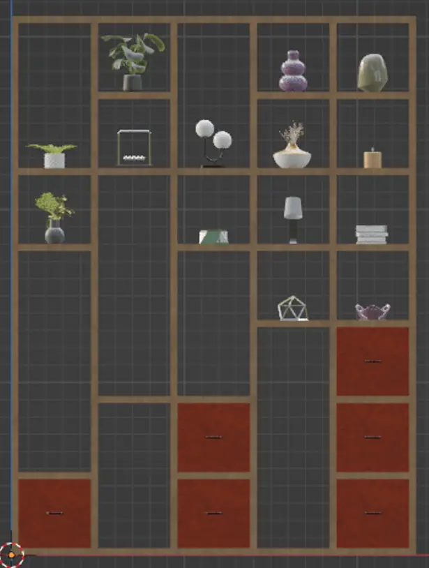 This parametric bookshelf was created in an early version of the geometry nodes of Blender. Considering the numerous limitations of the tool at the time, the following were created:
